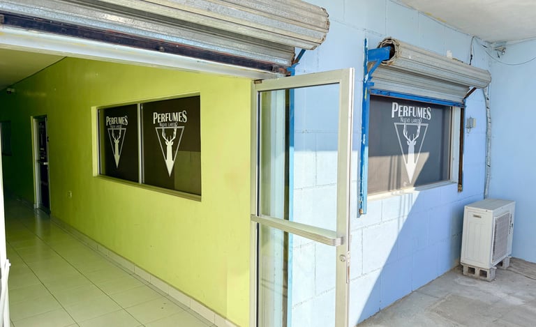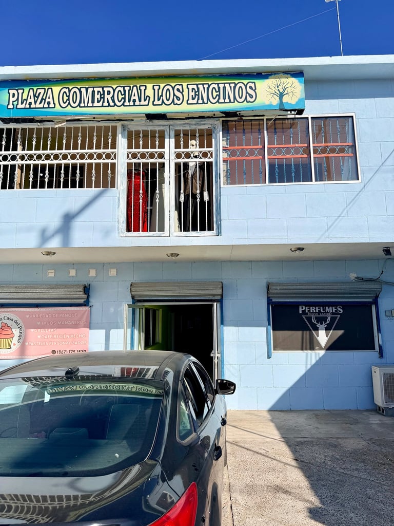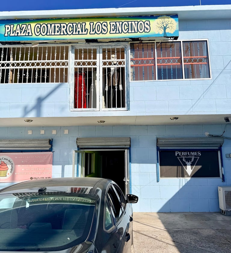 Estamos en Nuevo Laredo, Tamaulipas, México, en la plaza comercial LOS ENCINOS, edificio color azul celeste (así es actualmente en 2026) nuestro local tiene rotulado los vidrios y puerta con nuestro logo.